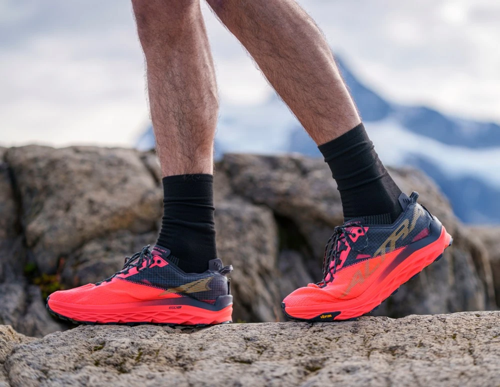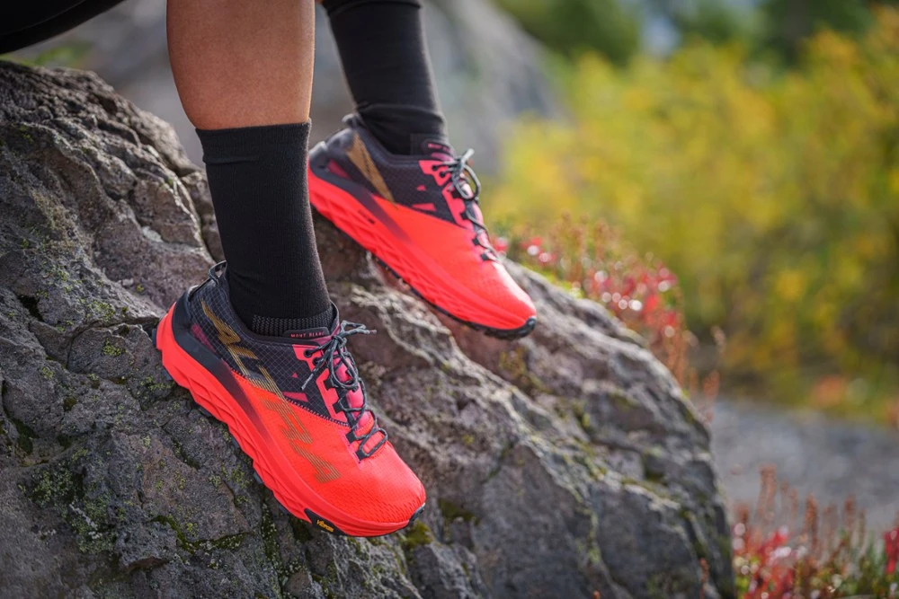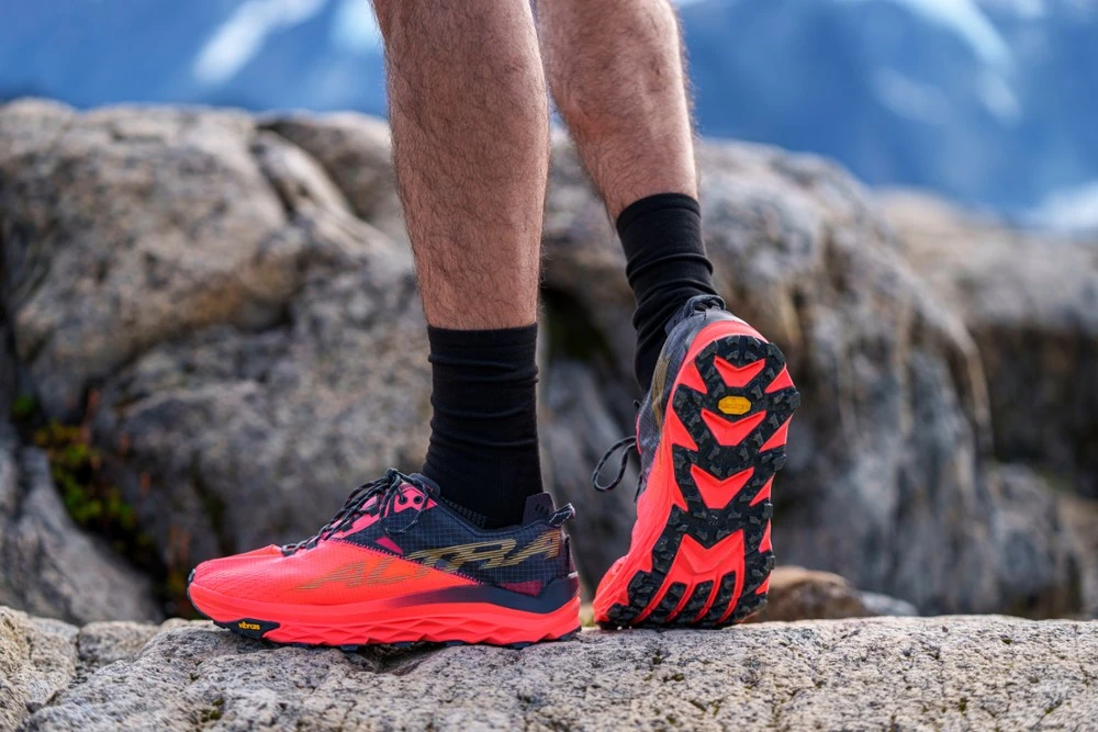 Inspired by the highest mountain in the Alps, the men’s Altra Mont Blanc trail-running shoes feature max cushion that’s designed for long, hard trail runs.