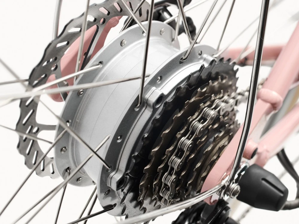 - 250-watt Hyena rear hub motor provides 3 levels of support and delivers 40 Nm of torque