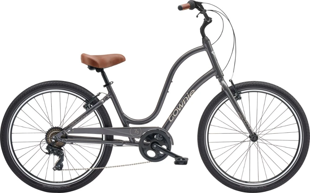 Designed for your comfort and leisure while on the go, the Electra Townie 7D step-through bike offers a range of gears so your riding stays smooth and simple, and having fun is a sure thing.
