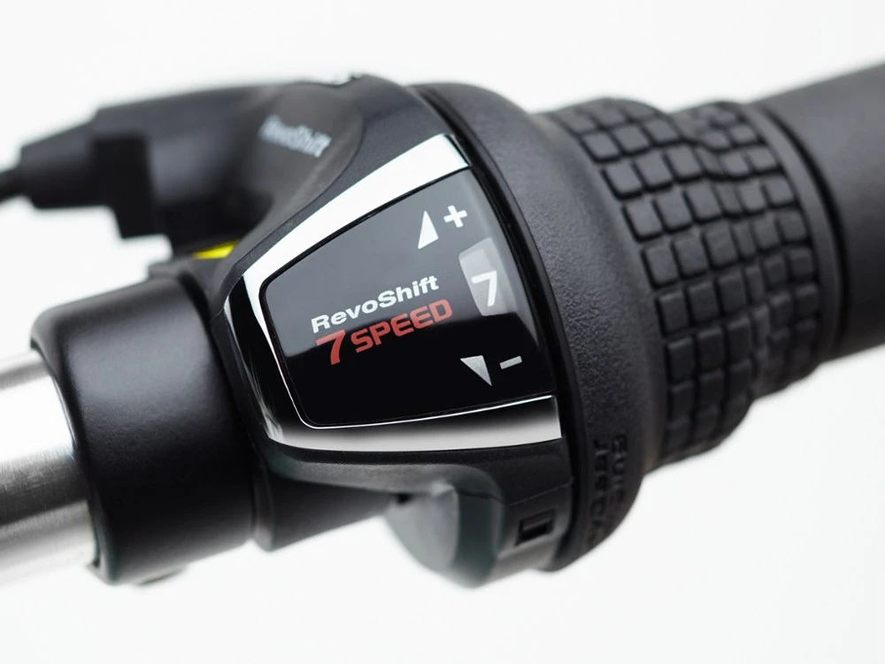 - Shimano Revo shifter and rear derailleur provide smooth shifting through 7 gears