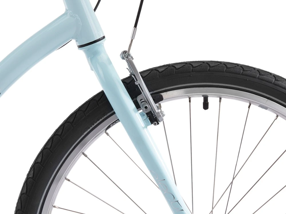 - Linear-pull brakes provide controlled deceleration for easy stopping