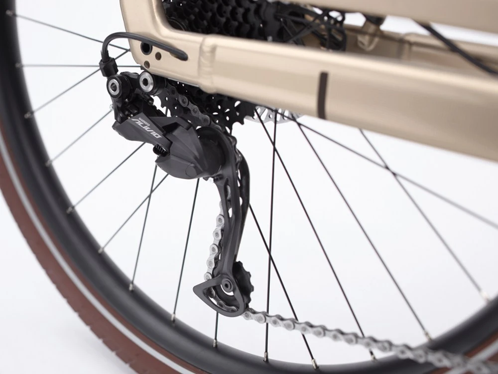 - 9-speed derailleur gear system allows for quick transitions and a wide range of gearing options