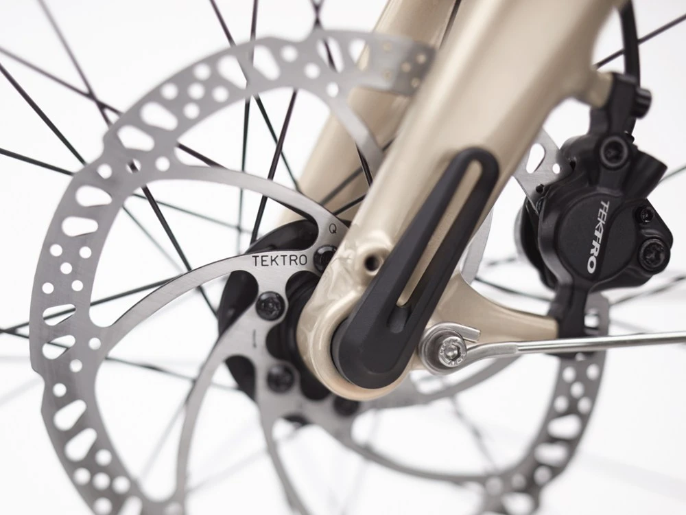 - Hydraulic disc brakes and a suspension seat post ensure a smooth ride