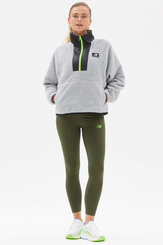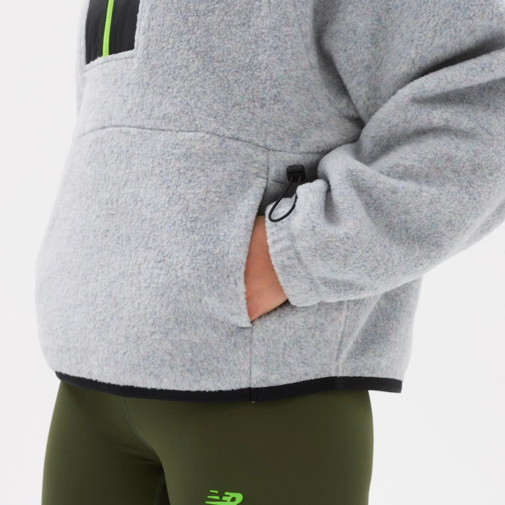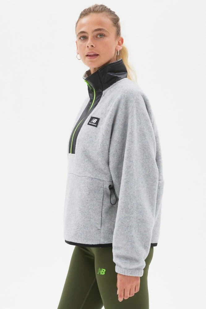 Step up your game when you step outside in the women’s New Balance All Terrain Spinnex fleece pullover. Cozy for chilly hikes, its modern oversize silhouette grants it trail-to-town versatility.