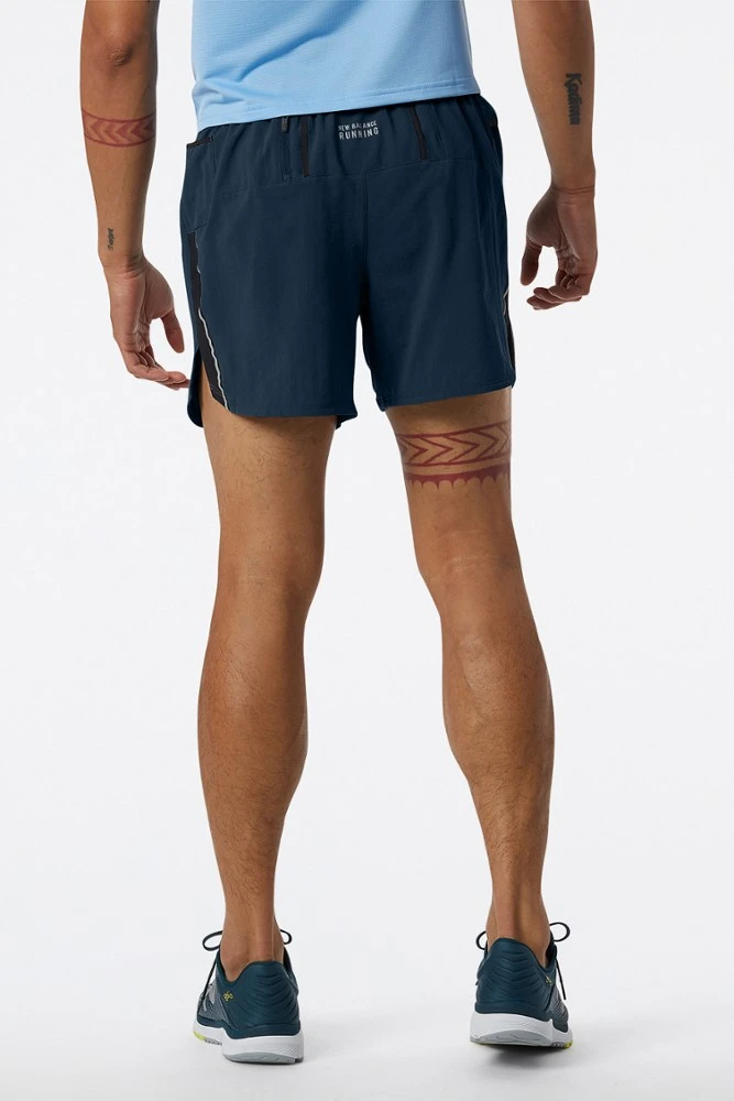 Great for everything from light morning jogs to long runs, these men’s 5 in. inseam New Balance Impact Run shorts feature a storage tunnel in back to hold extra layers when your workout gets heated.