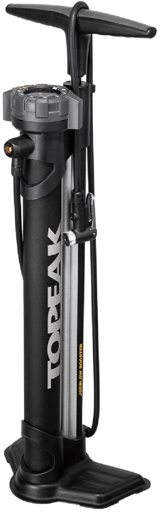 Half air compressor and half pump, the Topeak JoeBlow Booster floor pump with SmartHead features an air chamber that stores a 1-liter air charge (at up to 160 psi) to quickly seat a tubeless tire.