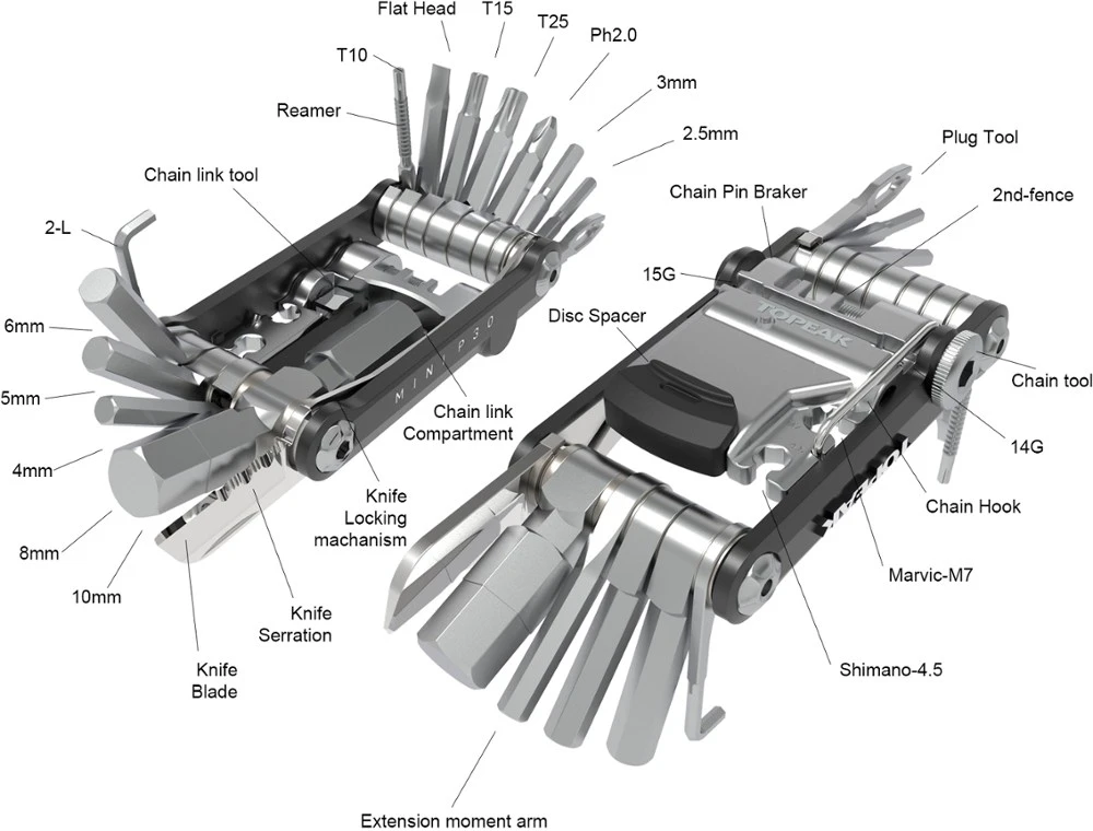 Built to handle any road or trailside repair, the Topeak Mini PT 30 multi-tool features 30 functions in a forged-alloy body and comes with a neoprene bag for protection.