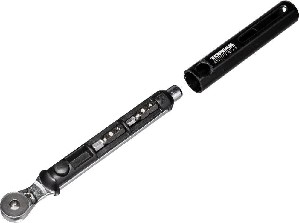 Compact, easy to use and easy to carry, the Topeak ratchet stick has a built-in compartment that stores 5 of your most commonly used bits.