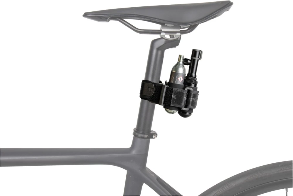 - Mounting module fits on any tube such as seatpost or bike frame, and can accommodate up to 2 threaded 25 g CO2 cartridges (not included)